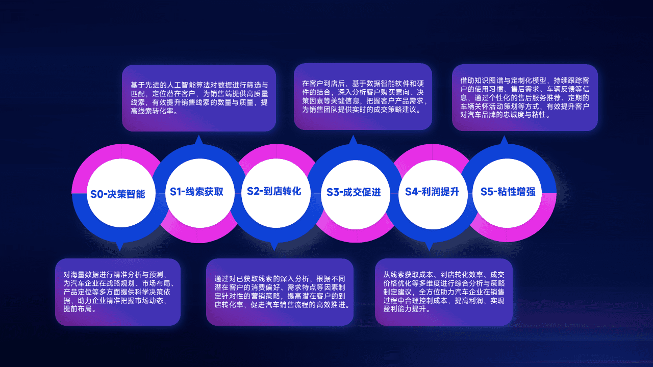 通过拓宽潜在客户来源、、、、优化线索分配并提高到店转化率,,以增强销售效率。。同时,,,,利用线索数据不断优化分析模型,,,有效提升转化率,,扩大营销影响力。。。